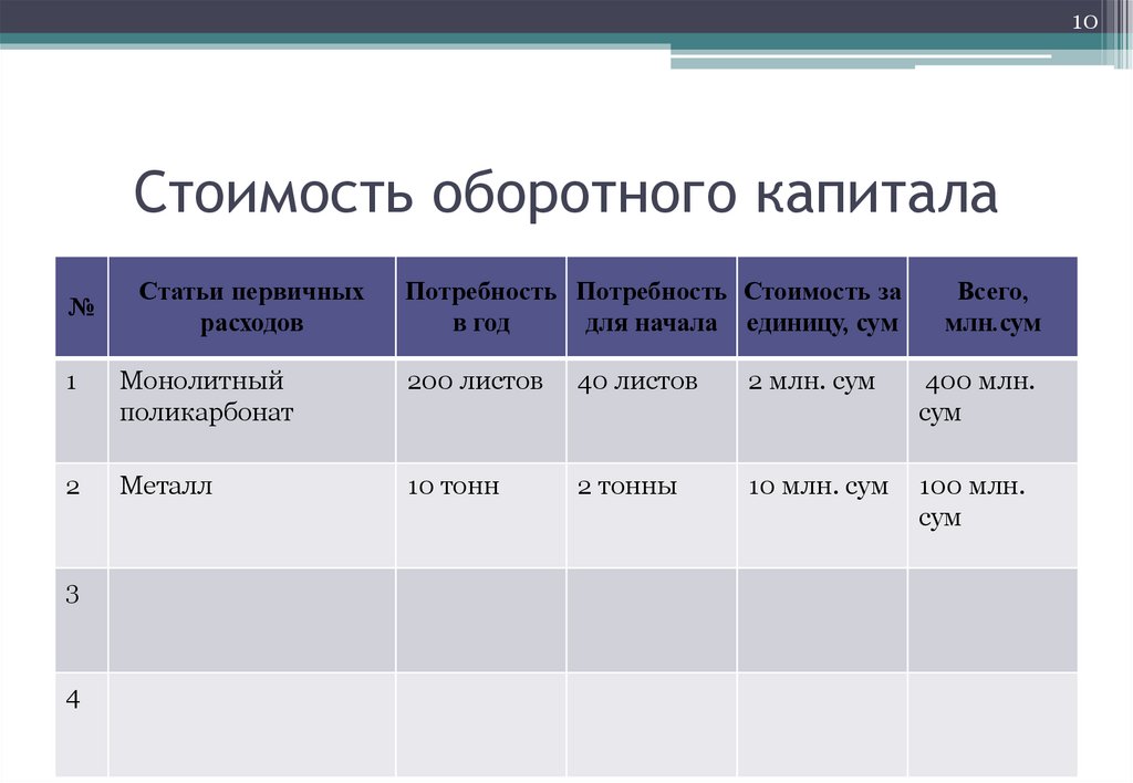 10Стоимость оборотного капитала