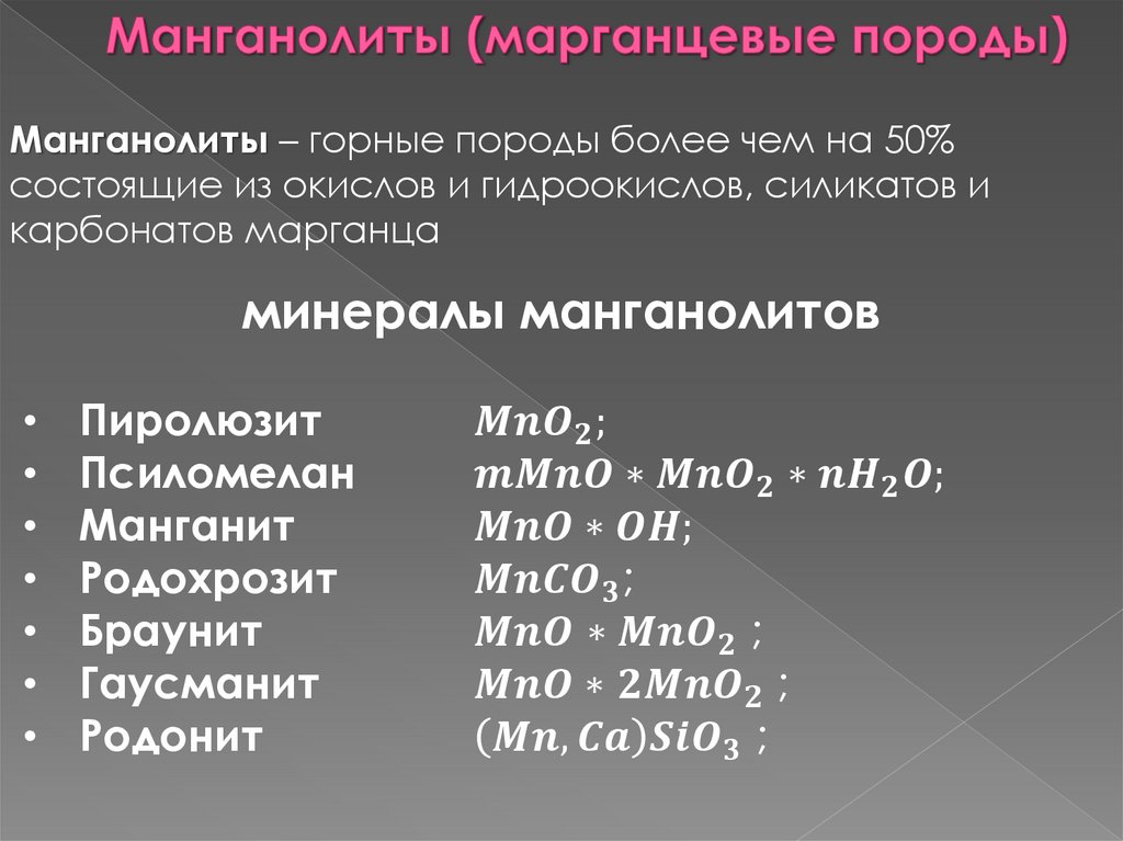Манганолиты – горные породы более чем на 50%