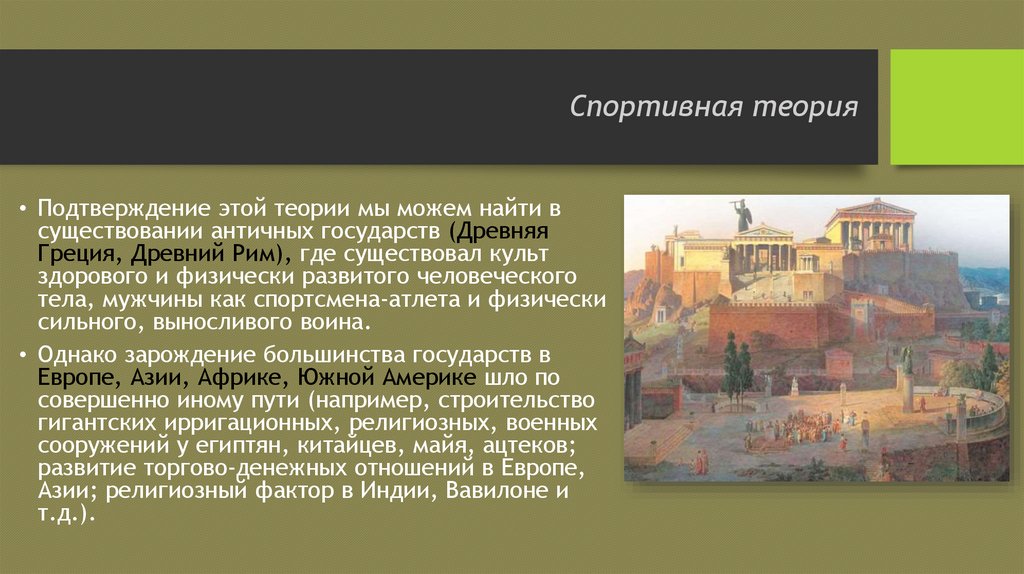 Спортивная теория• Подтверждение этой теории мы можем найти в