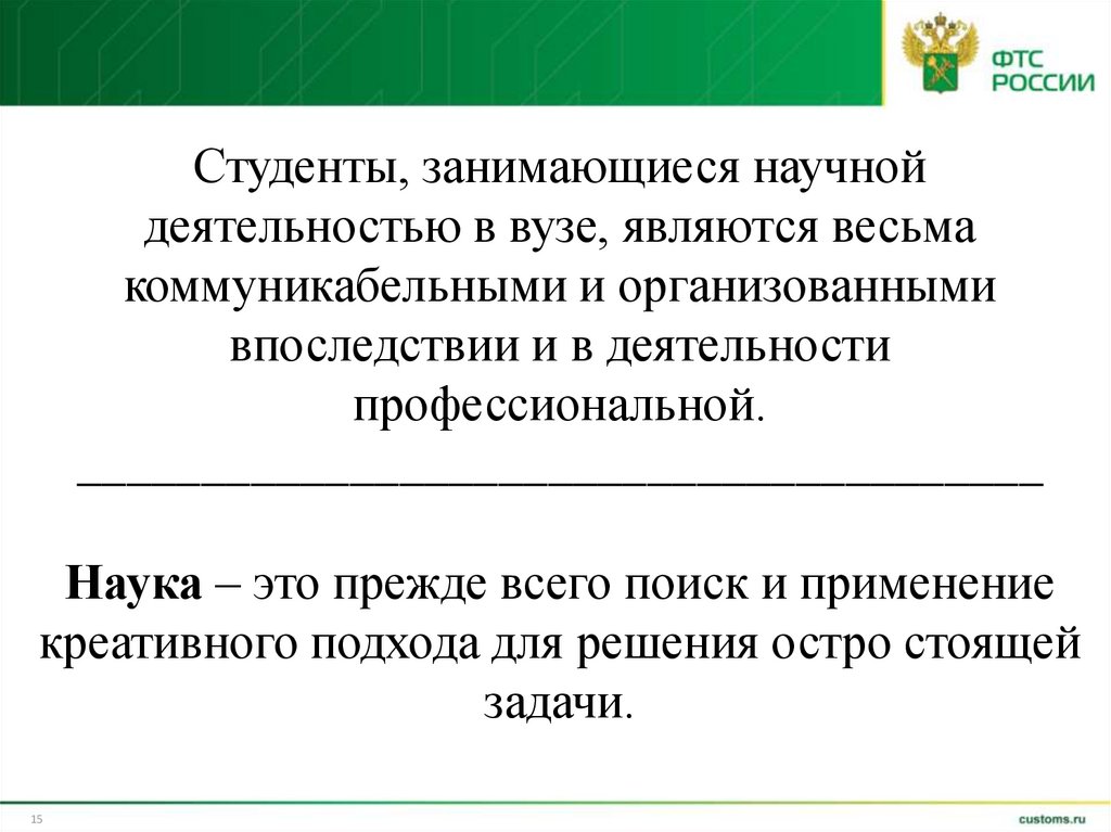 Студенты, занимающиеся научнойдеятельностью в вузе, являются весьма