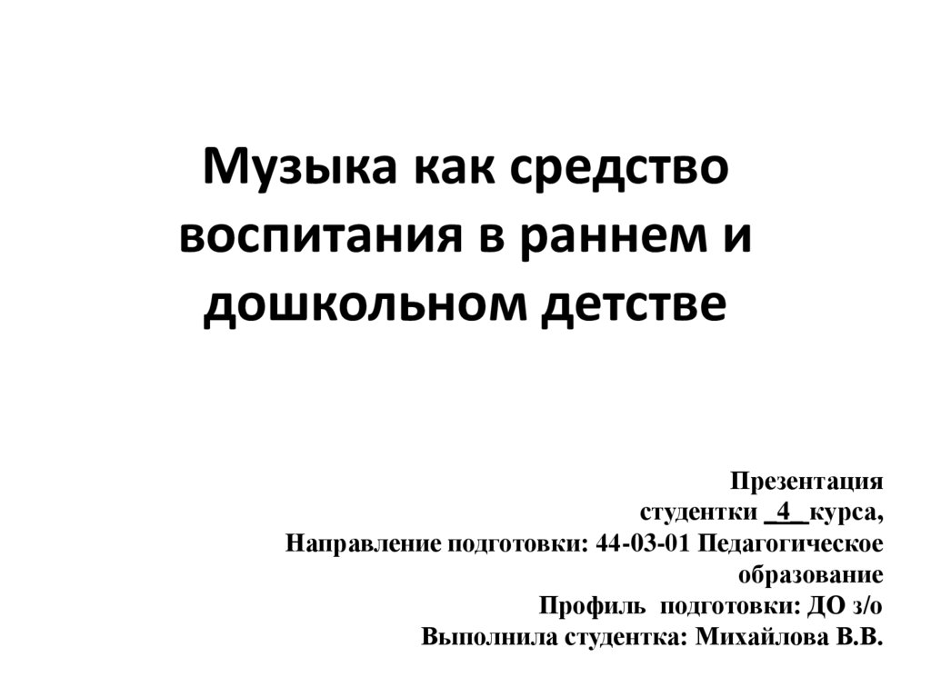 Музыка как средство воспитания в раннем и дошкольном детстве