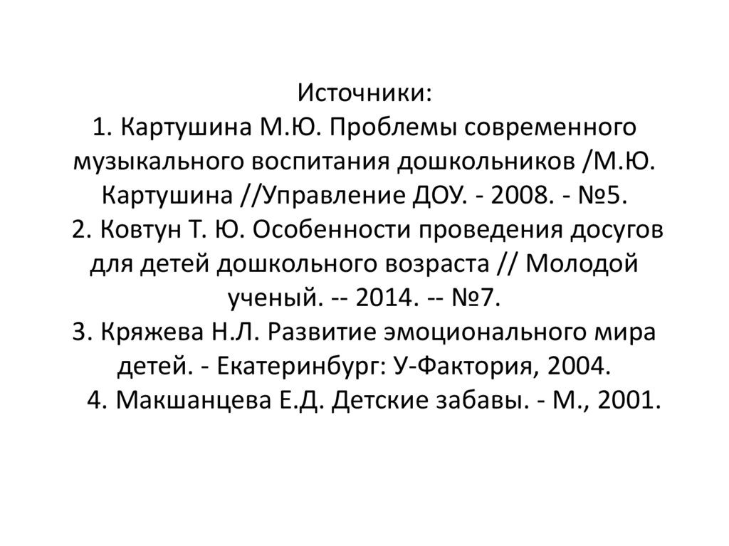 4. Макшанцева Е.Д. Детские забавы. - М., 2001.