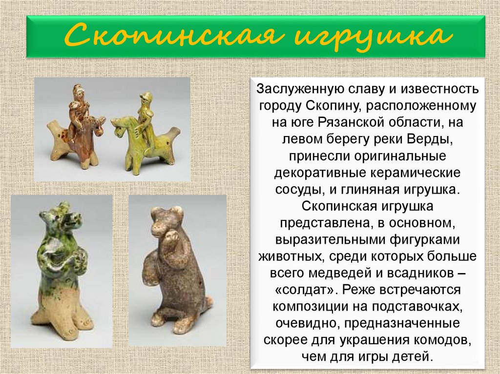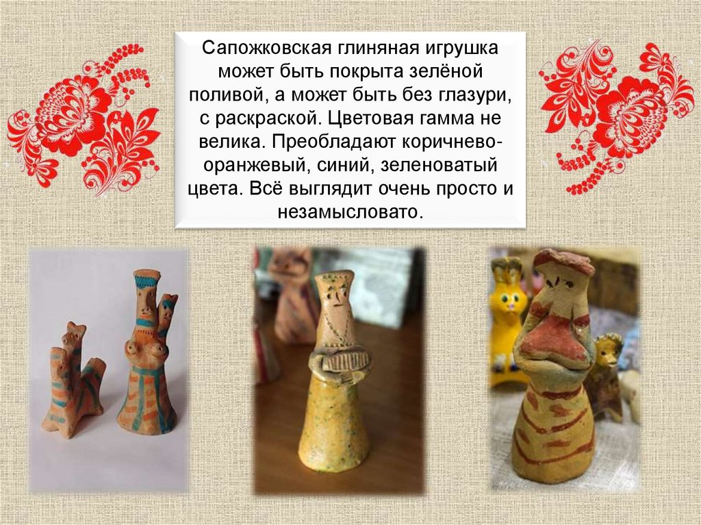 Сапожковская глиняная игрушкаможет быть покрыта зелёной