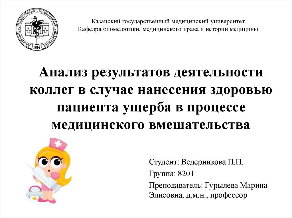 Казанский государственный медицинский университетКафедра биомедэтики, медицинского права и истории медицины
