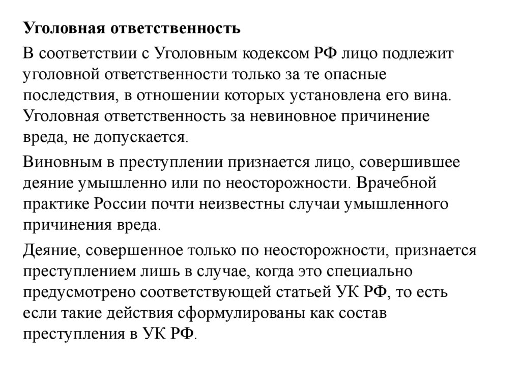 Уголовная ответственностьВ соответствии с Уголовным кодексом РФ лицо подлежит