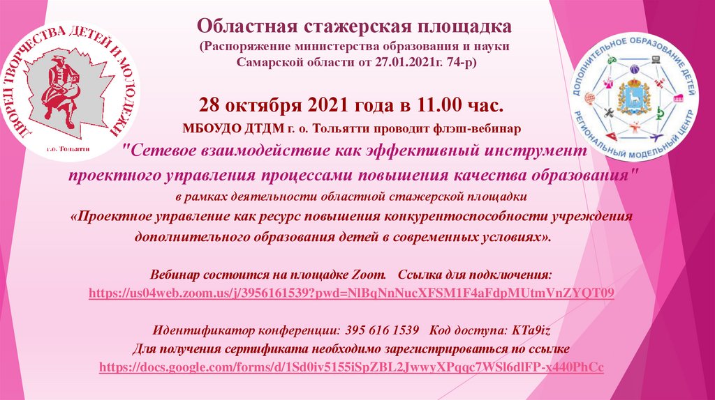 МБОУДО ДТДМ г. о. Тольятти проводит флэш-вебинар