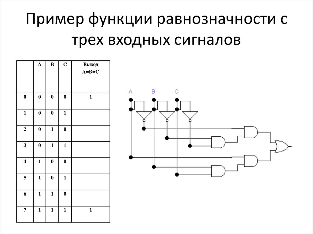 Пример функции равнозначности стрех входных сигналов
