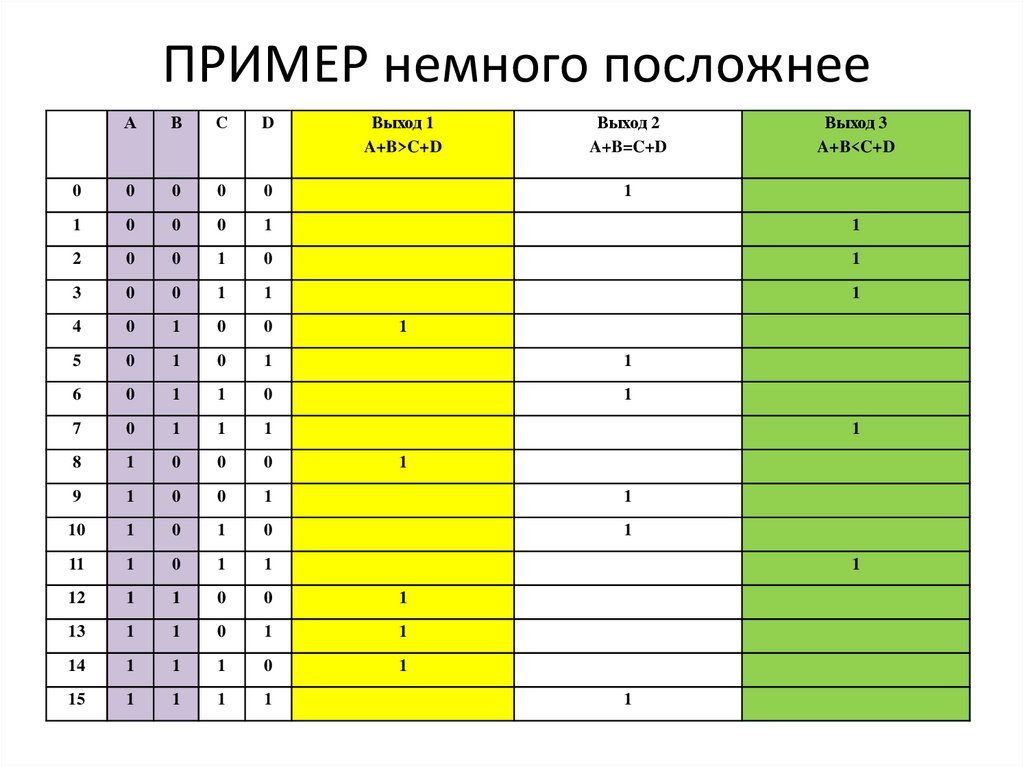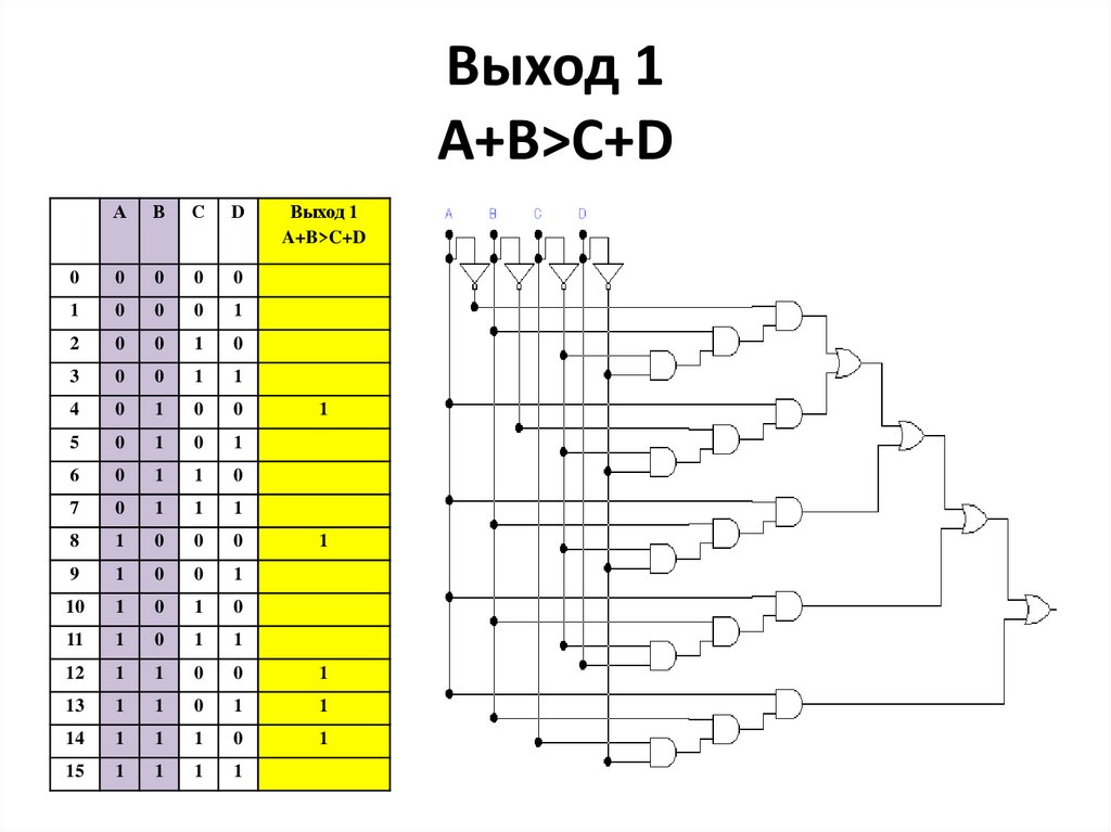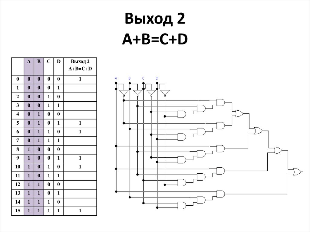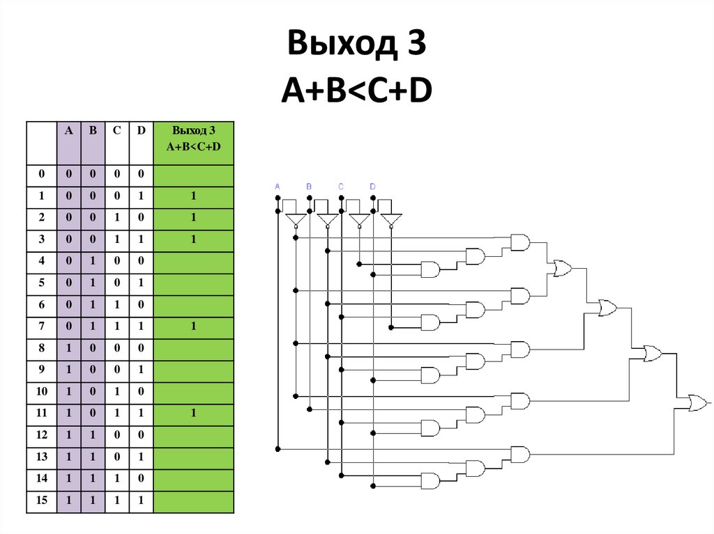Выход 3A+B<C+D