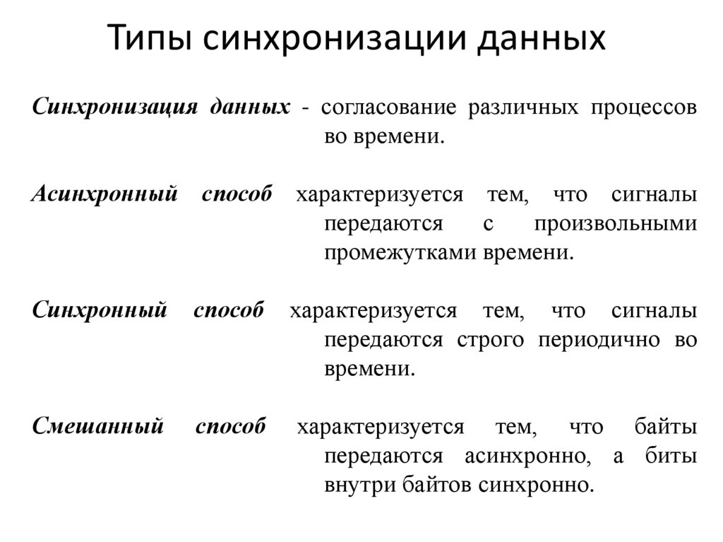 Типы синхронизации данныхСинхронизация данных - согласование различных процессов