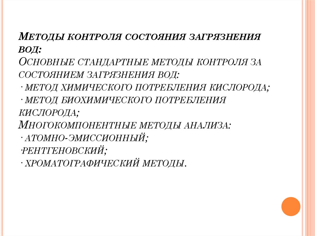 МЕТОДЫ КОНТРОЛЯ СОСТОЯНИЯ ЗАГРЯЗНЕНИЯВОД: