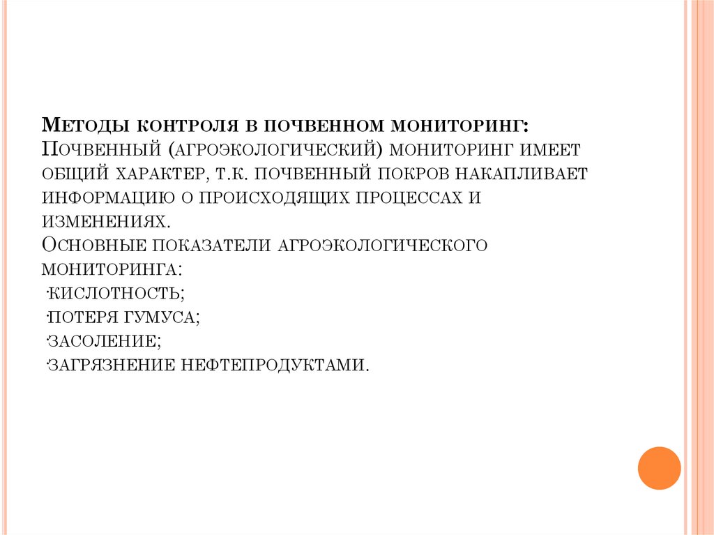 МЕТОДЫ КОНТРОЛЯ В ПОЧВЕННОМ МОНИТОРИНГ:ПОЧВЕННЫЙ (АГРОЭКОЛОГИЧЕСКИЙ) МОНИТОРИНГ ИМЕЕТ
