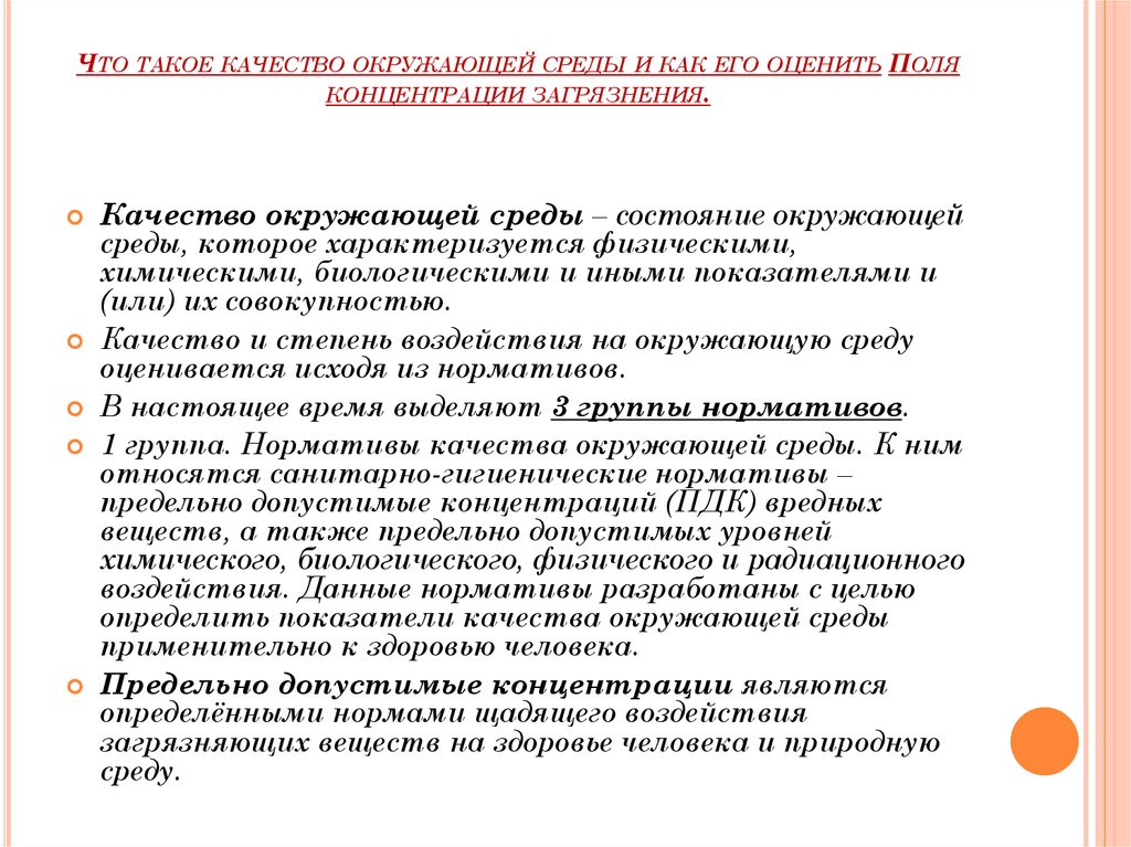 ЧТО ТАКОЕ КАЧЕСТВО ОКРУЖАЮЩЕЙ СРЕДЫ И КАК ЕГО ОЦЕНИТЬ ПОЛЯКОНЦЕНТРАЦИИ ЗАГРЯЗНЕНИЯ.