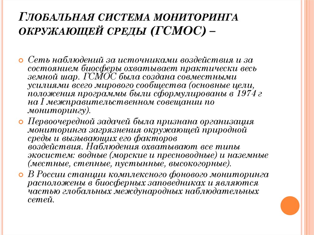ГЛОБАЛЬНАЯ СИСТЕМА МОНИТОРИНГАОКРУЖАЮЩЕЙ СРЕДЫ (ГСМОС) –