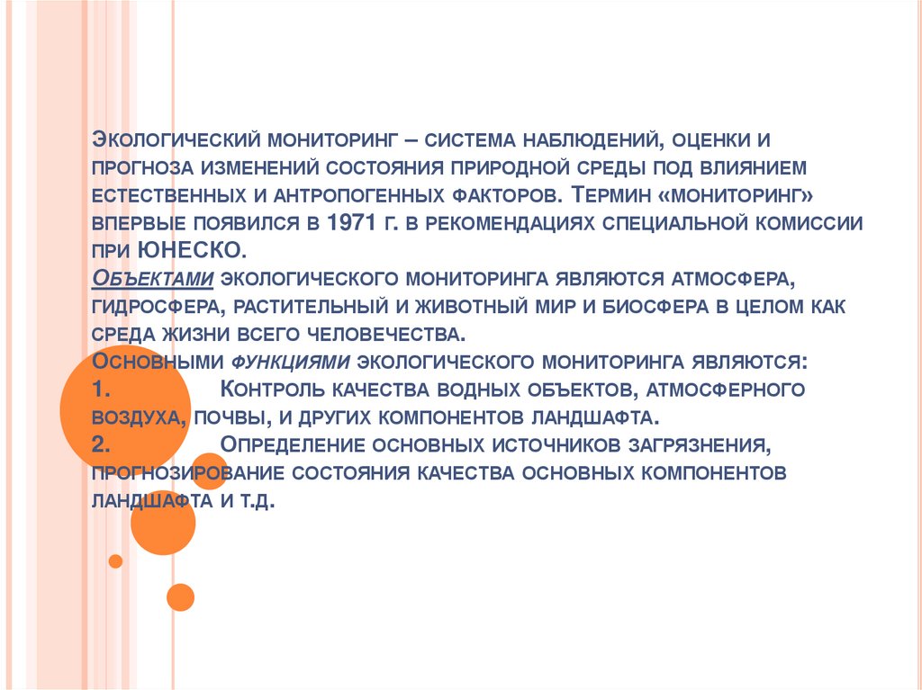 ЭКОЛОГИЧЕСКИЙ МОНИТОРИНГ – СИСТЕМА НАБЛЮДЕНИЙ, ОЦЕНКИ ИПРОГНОЗА ИЗМЕНЕНИЙ СОСТОЯНИЯ ПРИРОДНОЙ СРЕДЫ ПОД ВЛИЯНИЕМ
