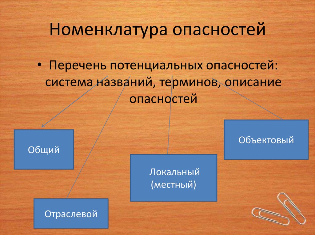 Номенклатура опасностей• Перечень потенциальных опасностей: