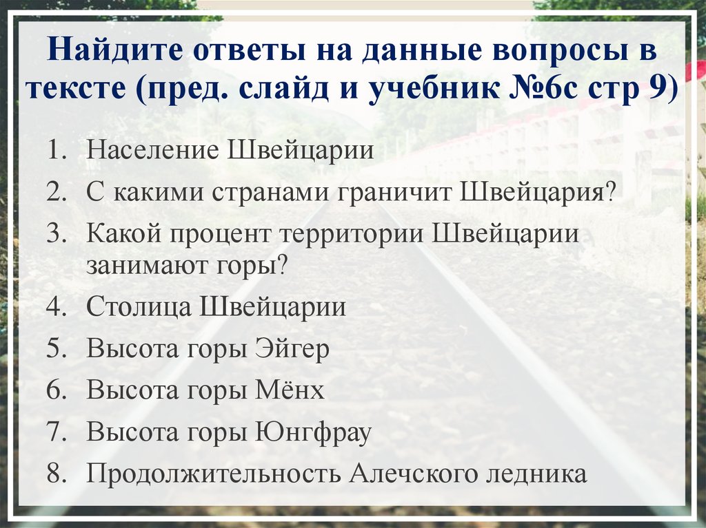 Найдите ответы на данные вопросы втексте (пред. слайд и учебник №6с стр 9)