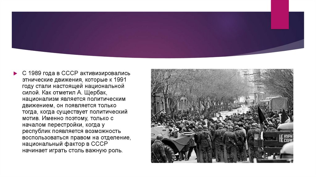 С 1989 года в СССР активизировалисьэтнические движения, которые к 1991