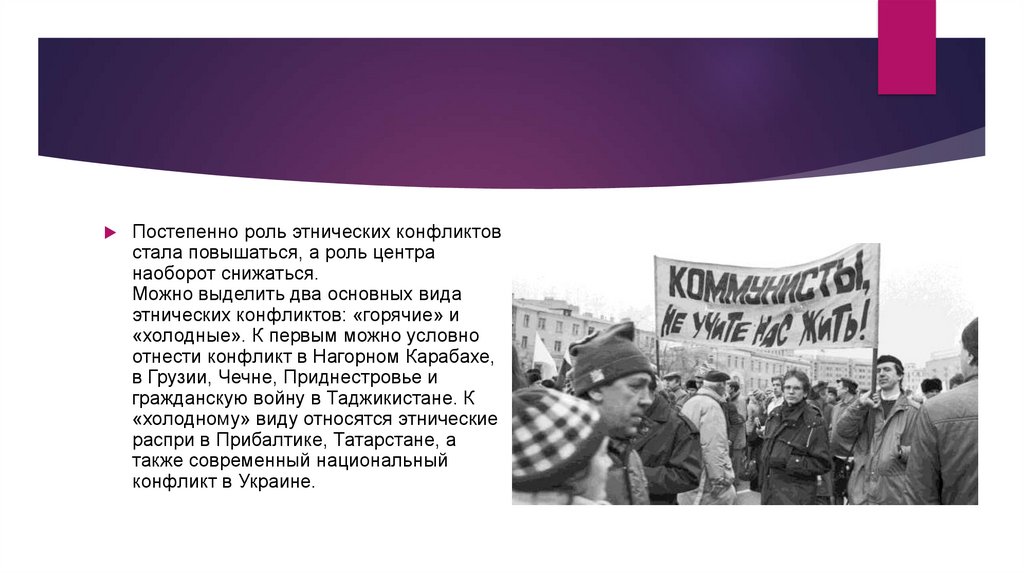Постепенно роль этнических конфликтовстала повышаться, а роль центра