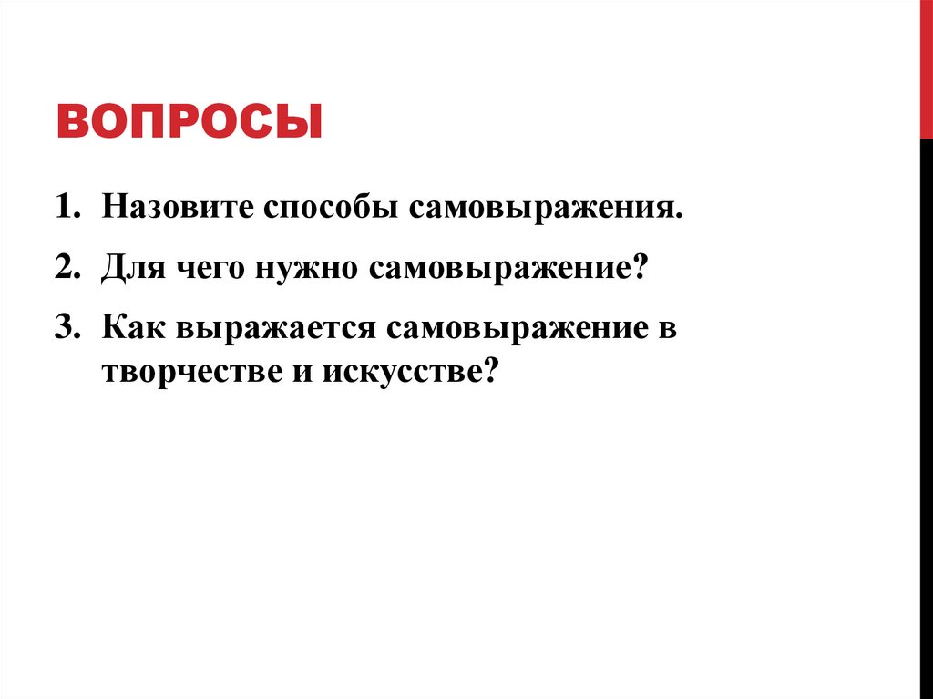 ВОПРОСЫ1. Назовите способы самовыражения.