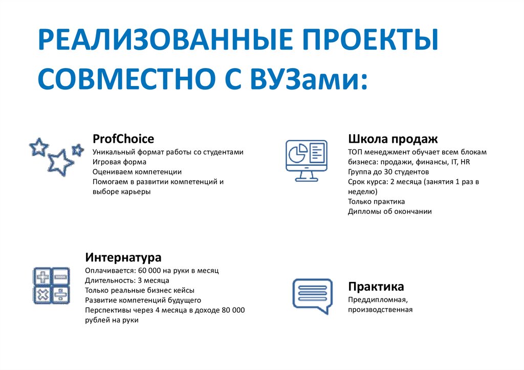 РЕАЛИЗОВАННЫЕ ПРОЕКТЫСОВМЕСТНО С ВУЗами: