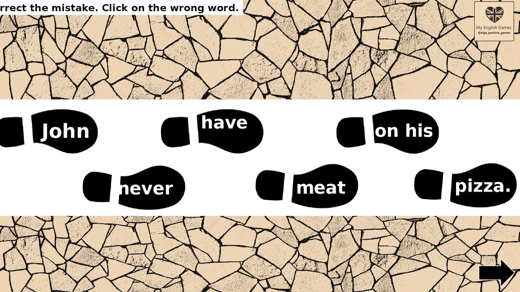 rrect the mistake. Click on the wrong word.wear