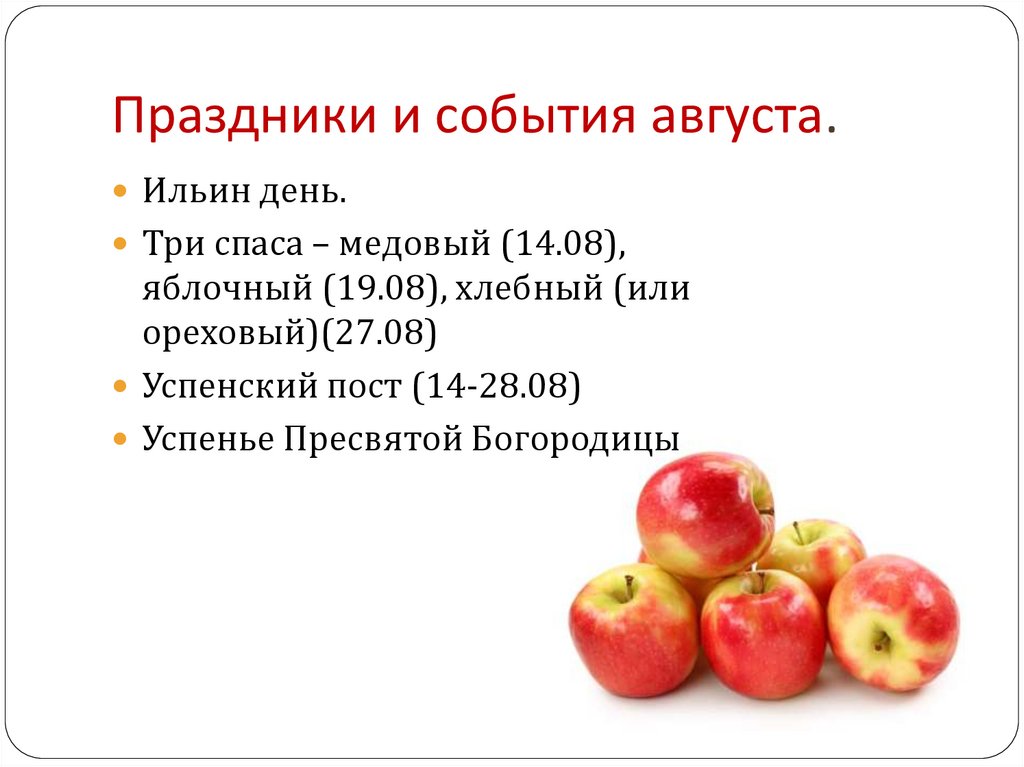Осень. Август Традиции. Праздники