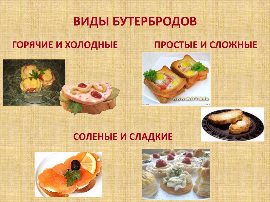 ВИДЫ БУТЕРБРОДОВГОРЯЧИЕ И ХОЛОДНЫЕ