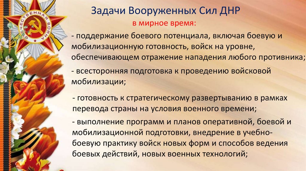 Задачи Вооруженных Сил ДНРв мирное время: