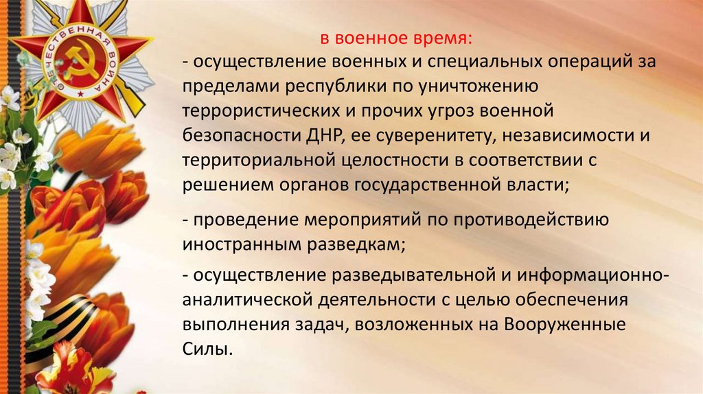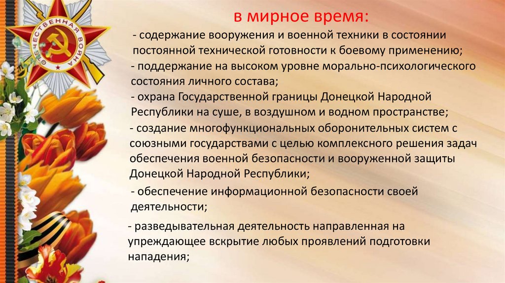 в военное время:- вооруженная защита Донецкой Народной