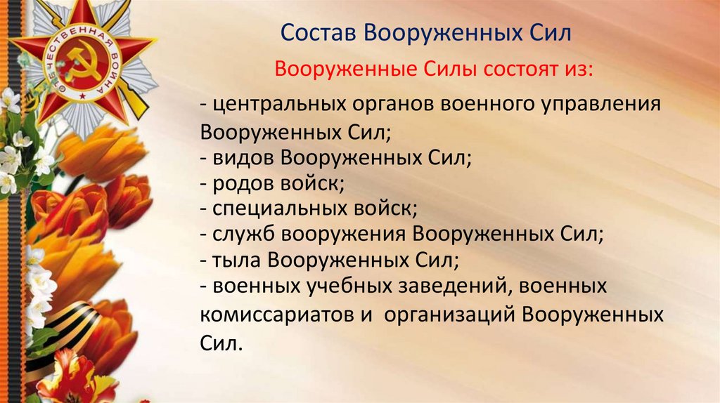 Состав Вооруженных СилВооруженные Силы состоят из: