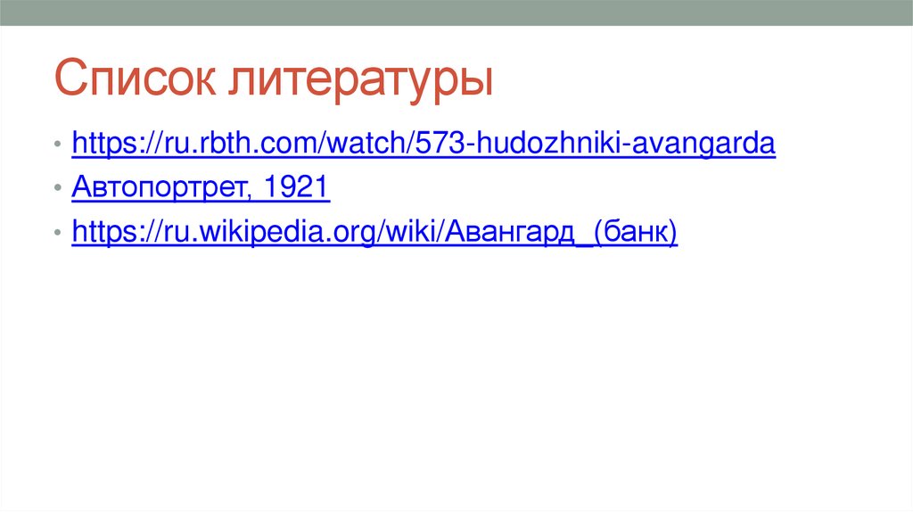 Список литературы• https://ru.rbth.com/watch/573-hudozhniki-avangarda