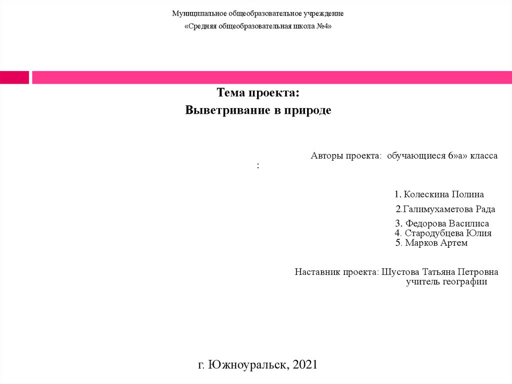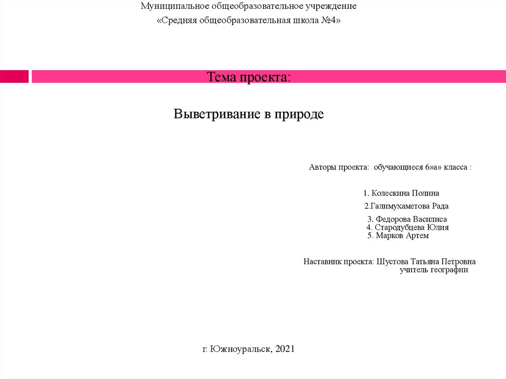 Авторы проекта: обучающиеся 6»а» класса