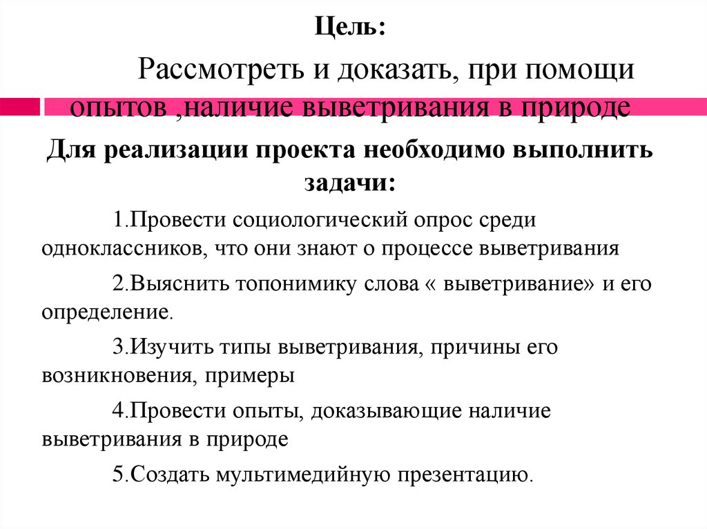 опытов ,наличие выветривания в природе