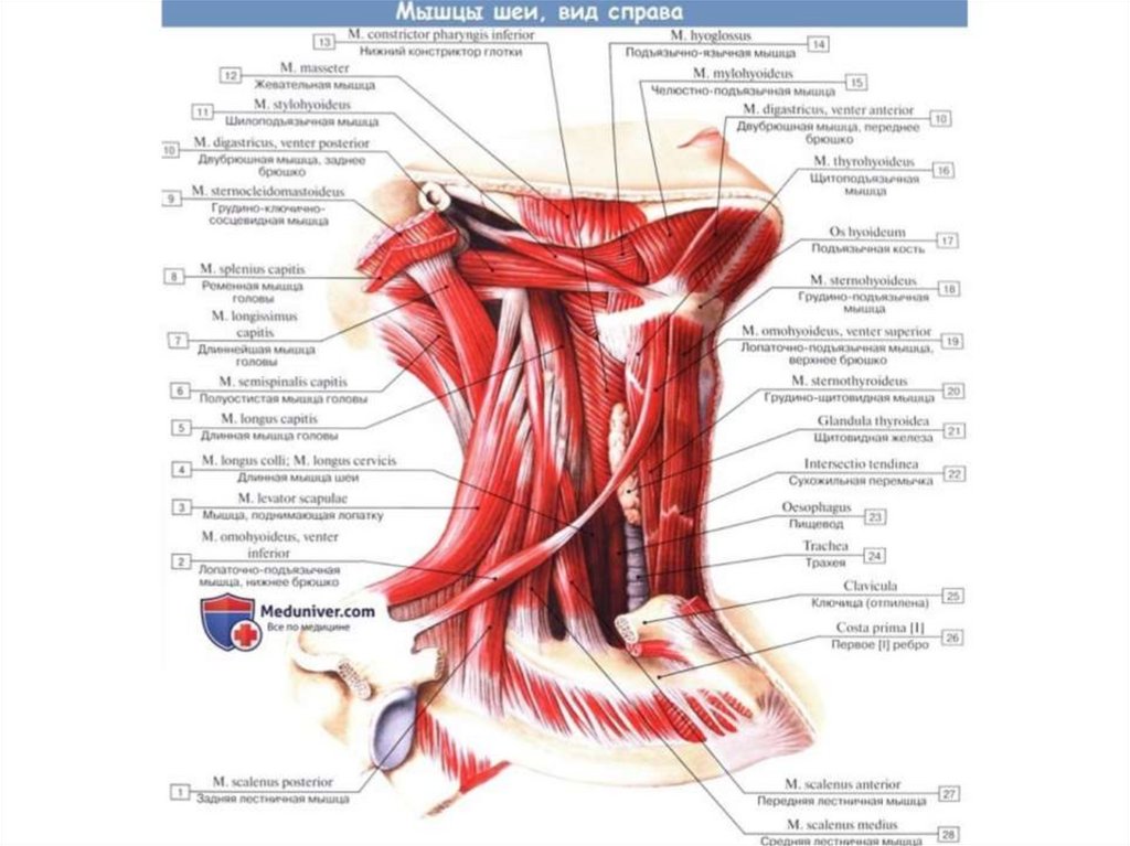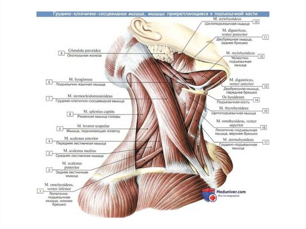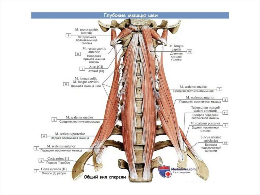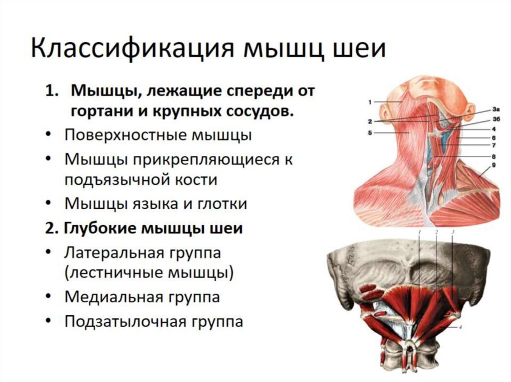 Мышцы шеи. Поверхностные мышцы шеи. Глубокие мышцы шеи
