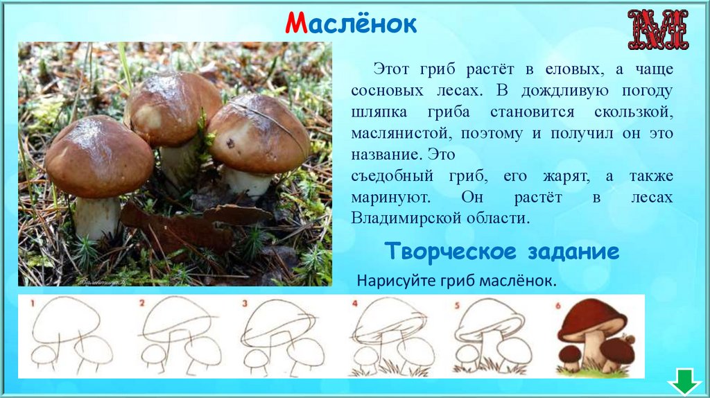 Нарисуйте гриб маслёнок.