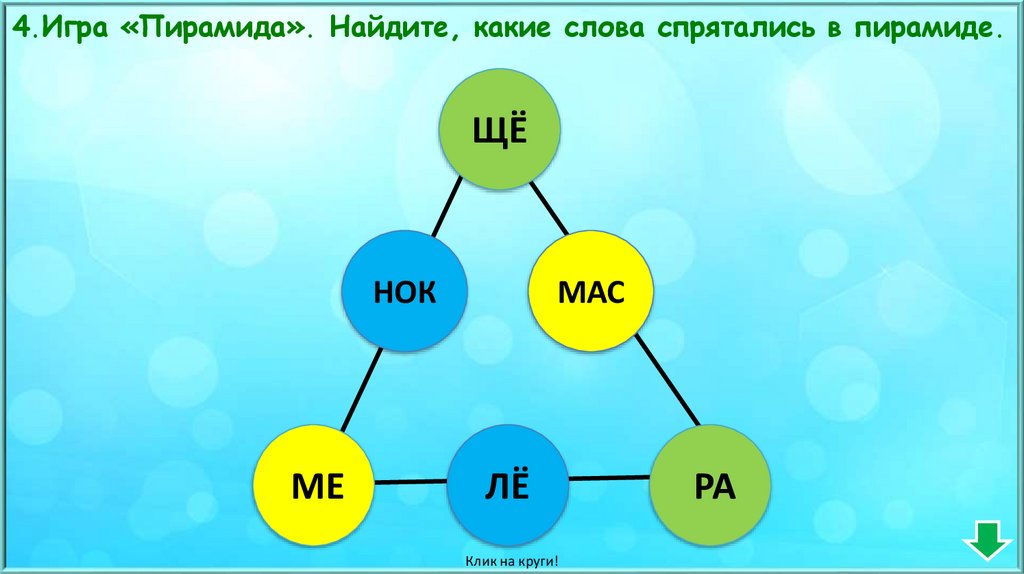4.Игра «Пирамида». Найдите, какие слова спрятались в пирамиде.ЩЁ