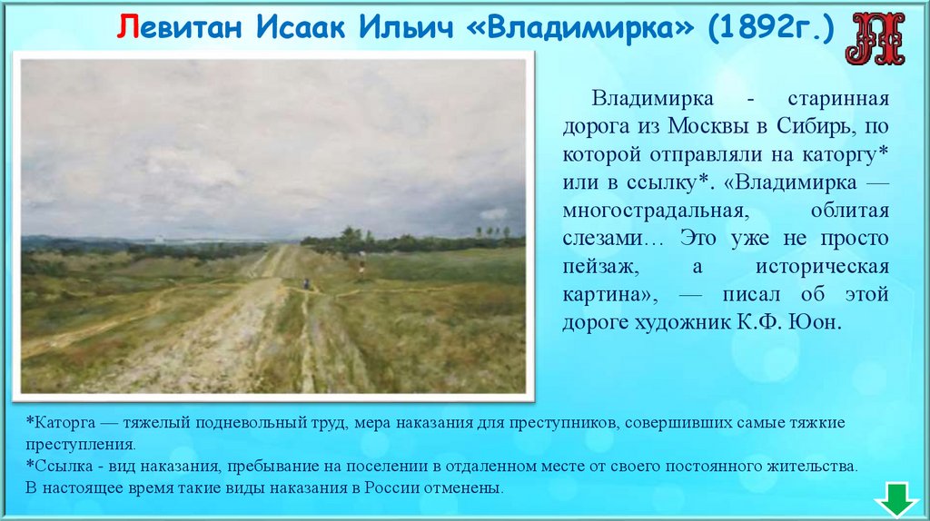 Левитан Исаак Ильич «Владимирка» (1892г.)Владимирка - старинная