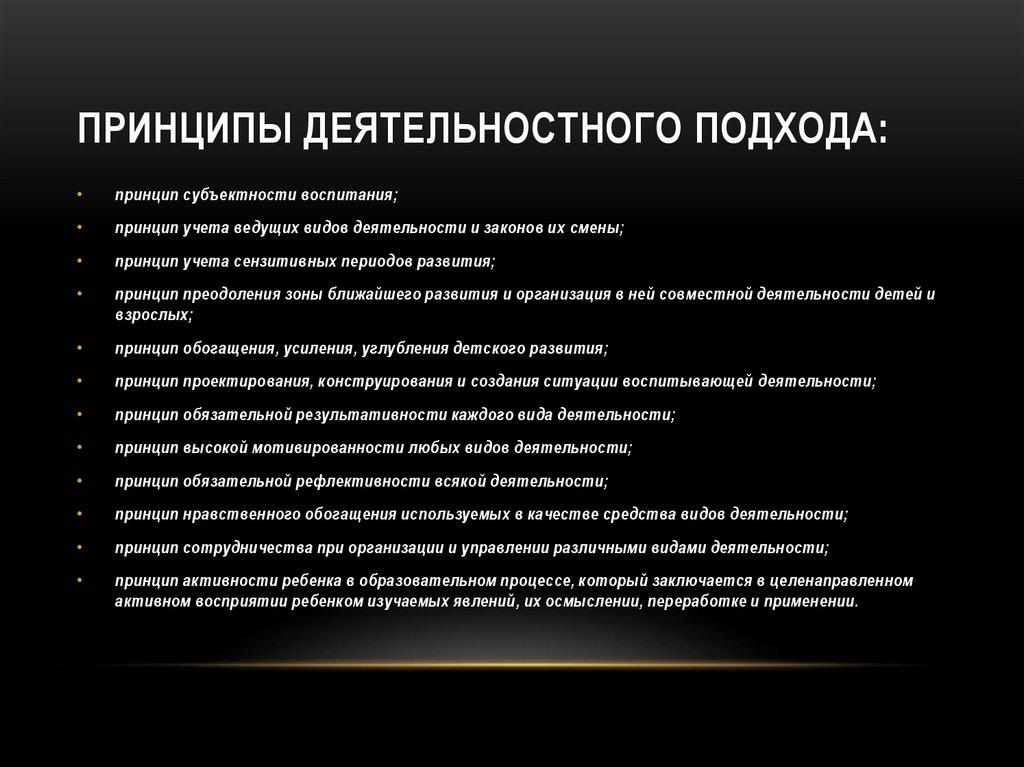 ПРИНЦИПЫ ДЕЯТЕЛЬНОСТНОГО ПОДХОДА:принцип субъектности воспитания;