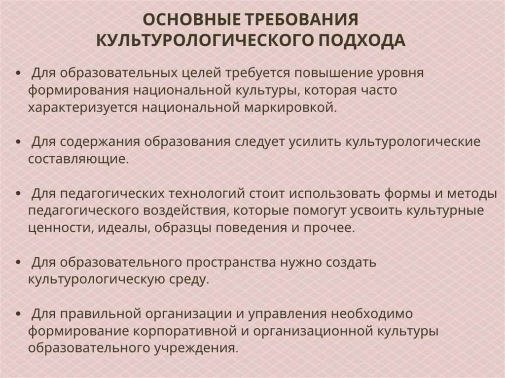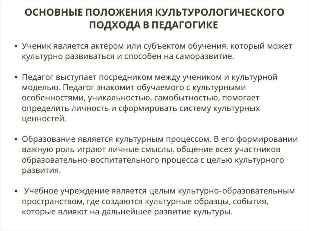 Культурологический подход как методологическая основа современной педагогической мысли. Лекция 7