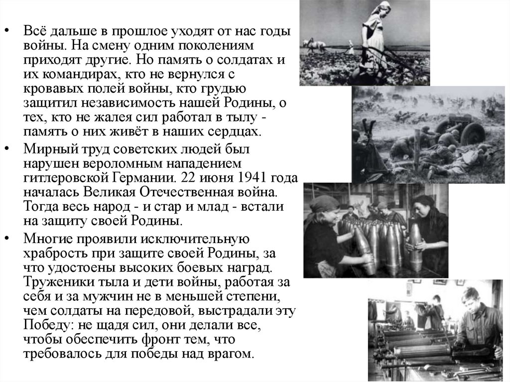 тех, кто не жалея сил работал в тылу память о них живёт в наших сердцах.