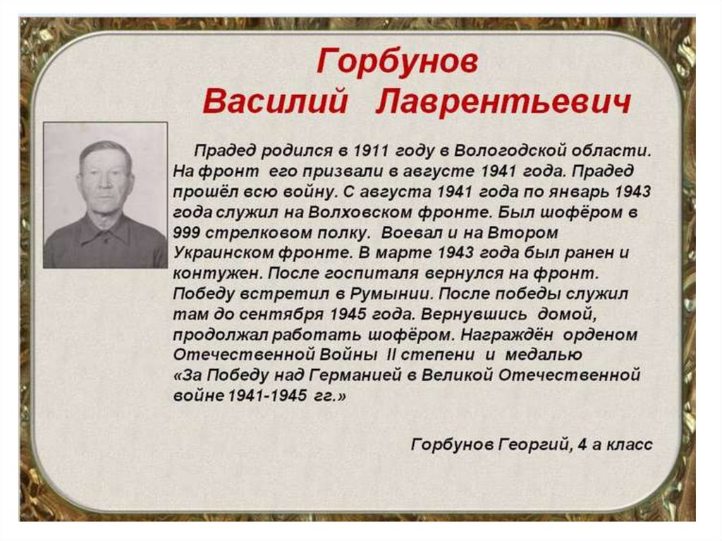 Мои родственники – участники Великой Отечественной войны. Рисование на тему «Герой живет рядом»