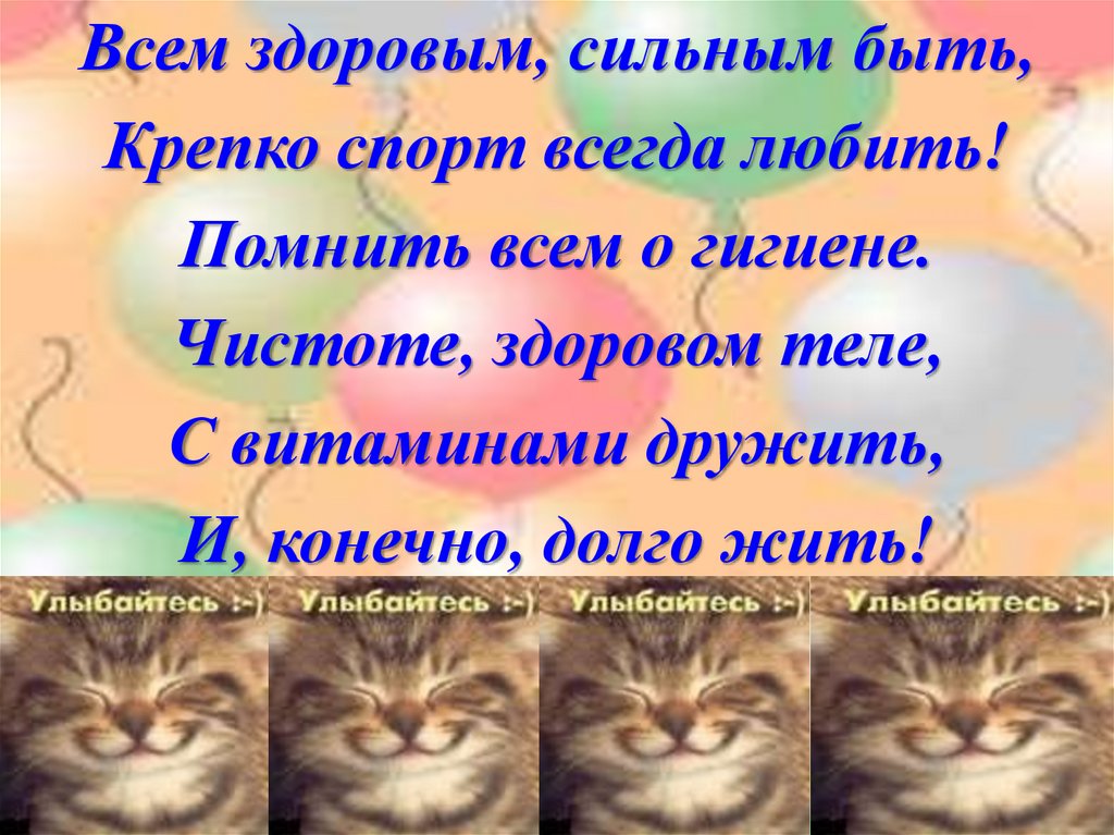 Всем здоровым, сильным быть,Крепко спорт всегда любить!