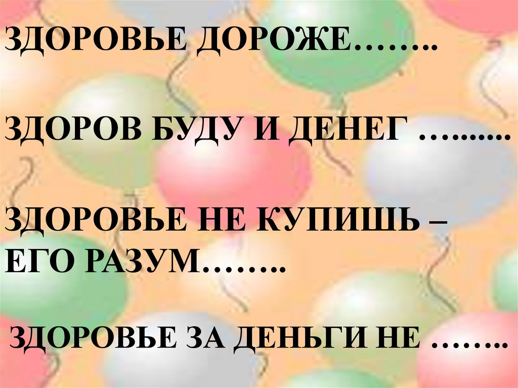 ЗДОРОВЬЕ ДОРОЖЕ……..ЗДОРОВ БУДУ И ДЕНЕГ ….......