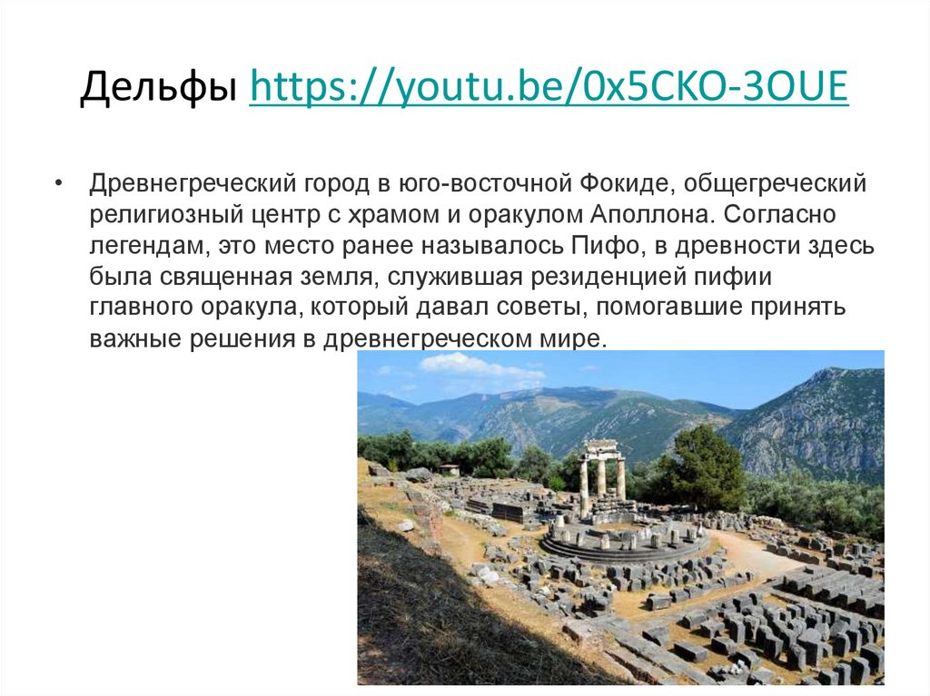 Дельфы https://youtu.be/0x5CKO-3OUE• Древнегреческий город в юго-восточной Фокиде, общегреческий