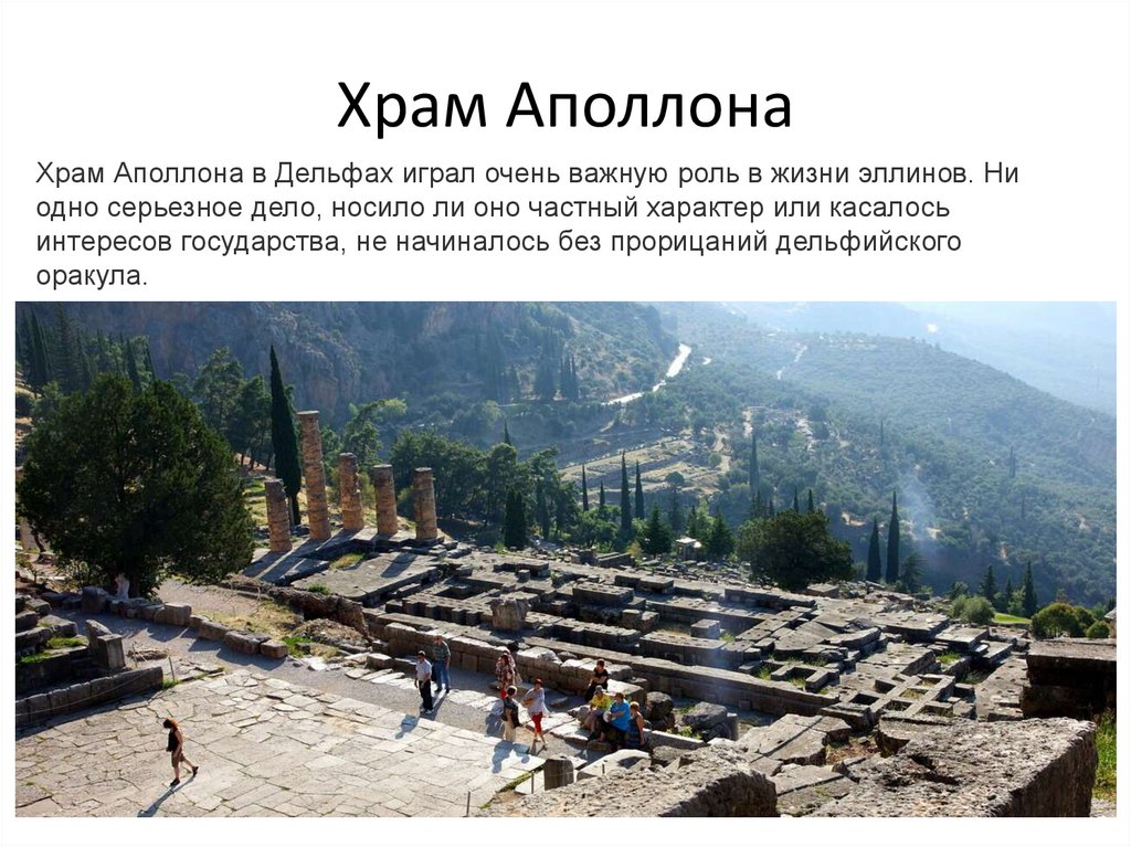 Храм АполлонаХрам Аполлона в Дельфах играл очень важную роль в жизни эллинов. Ни