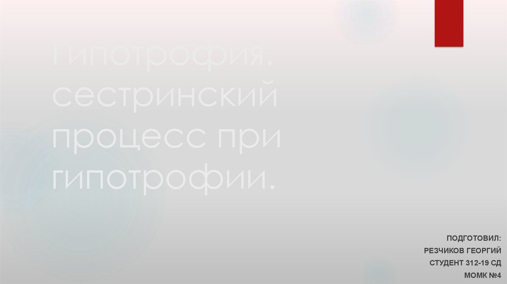 Гипотрофия. Сестринский процесс при гипотрофии