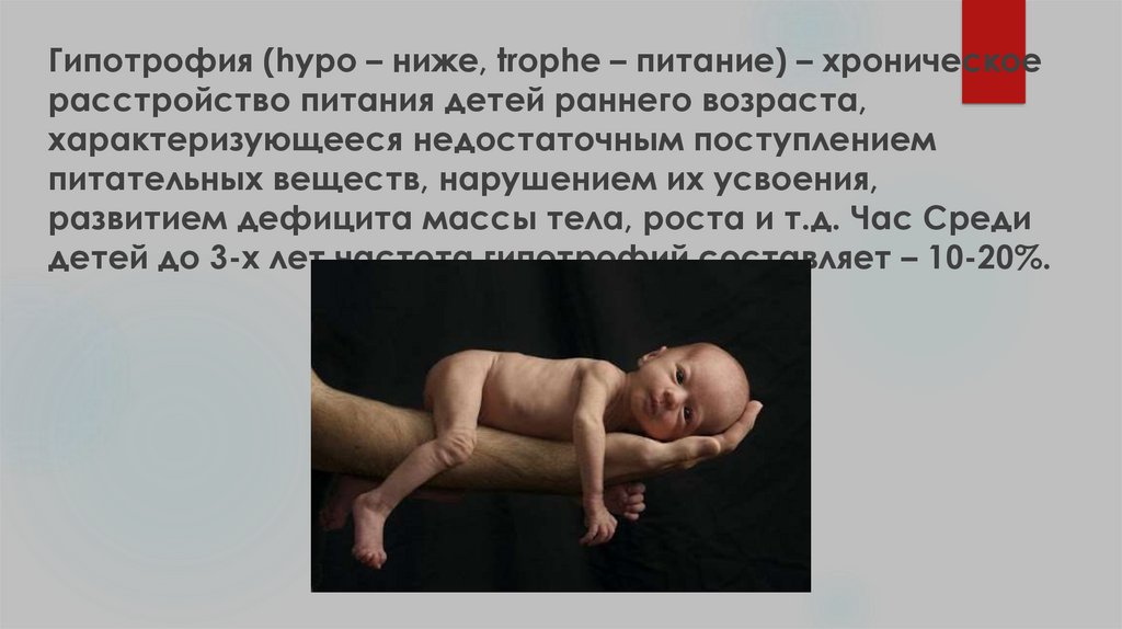 Гипотрофия (hypo – ниже, trophe – питание) – хроническоерасстройство питания детей раннего возраста,
