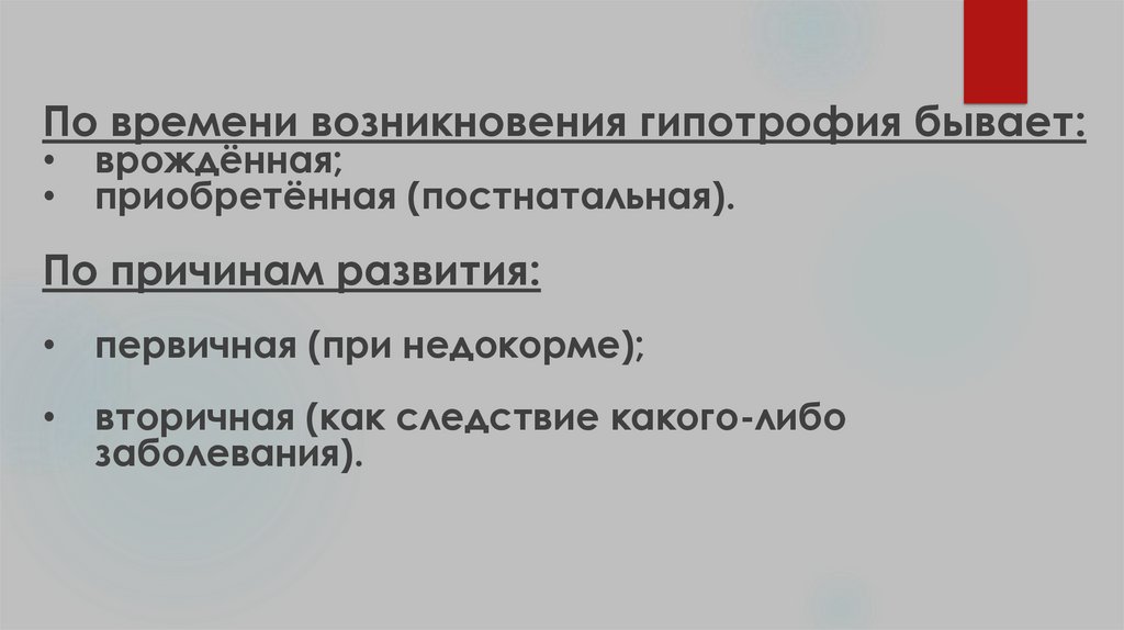 По времени возникновения гипотрофия бывает:врождённая;