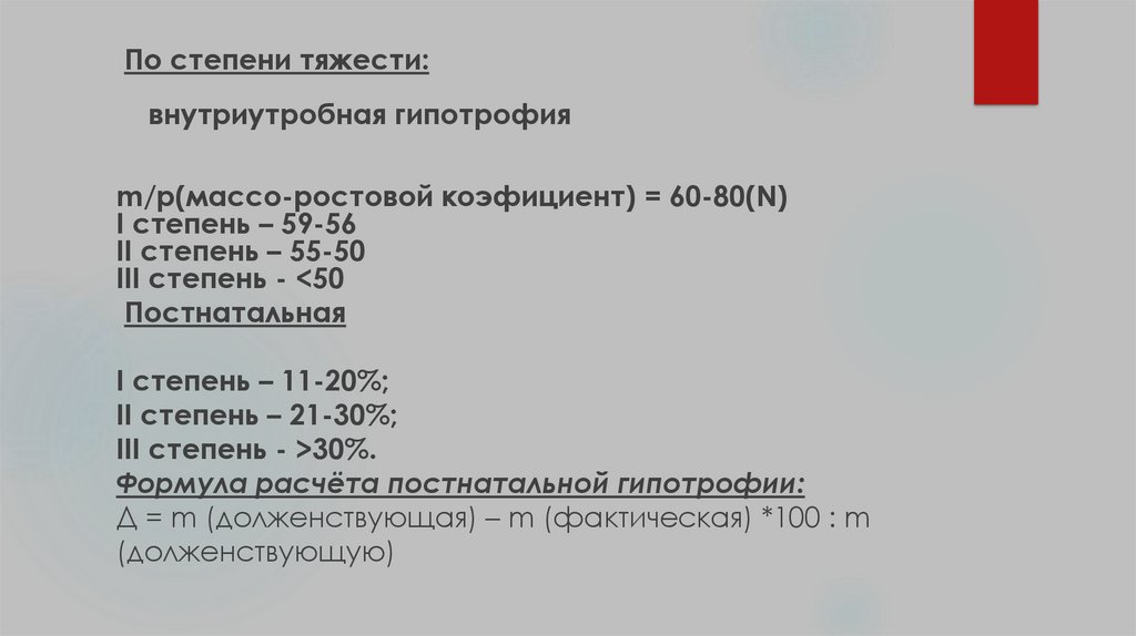 Формула расчёта постнатальной гипотрофии: