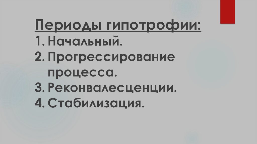 Периоды гипотрофии:1. Начальный.